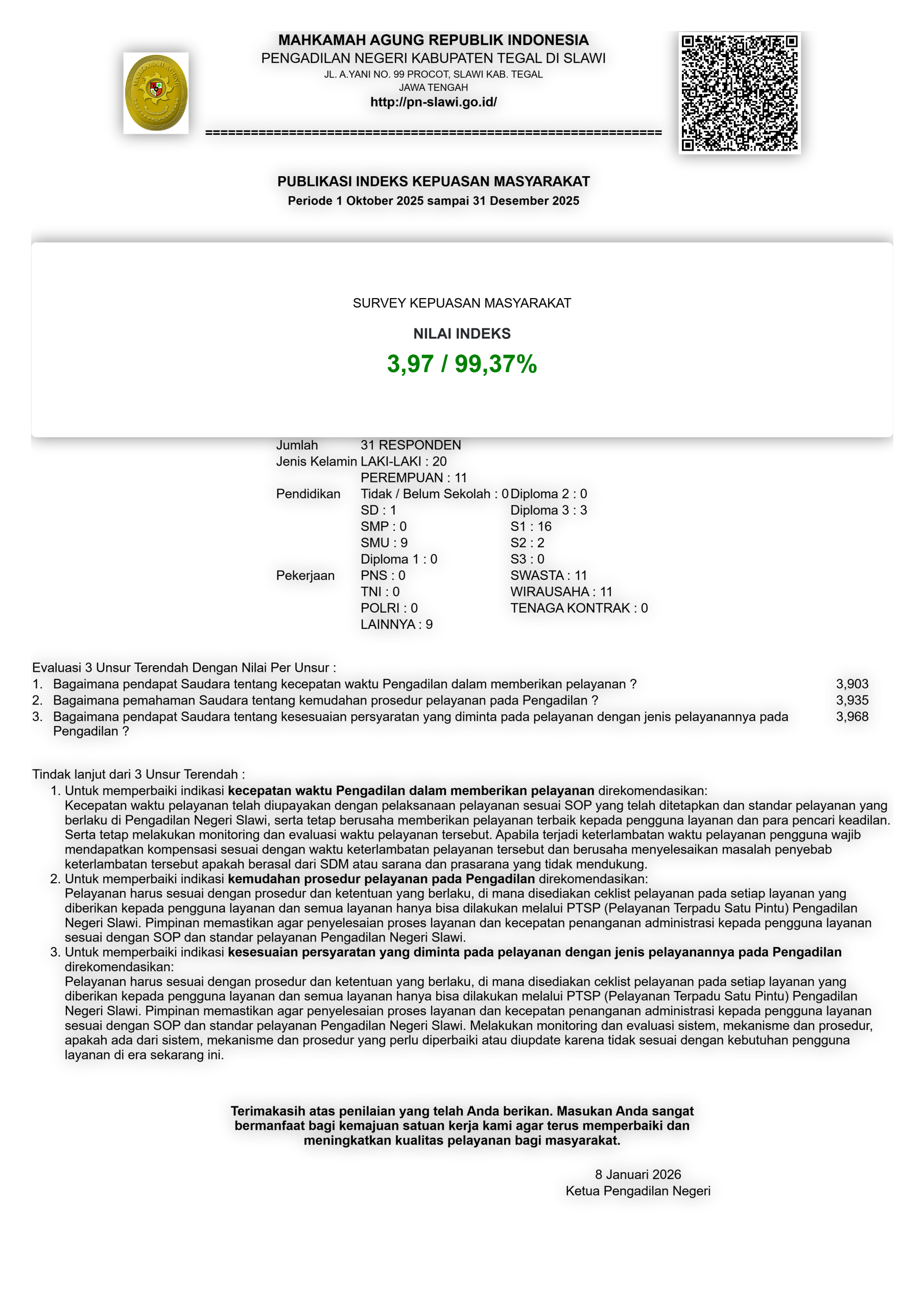 Pengadilan Negeri Slawi memberikan berbagai layanan peradilan yang mudah diakses, transparan, dan berorientasi pada kebutuhan masyarakat, guna mewujudkan keadilan yang cepat dan tepat.