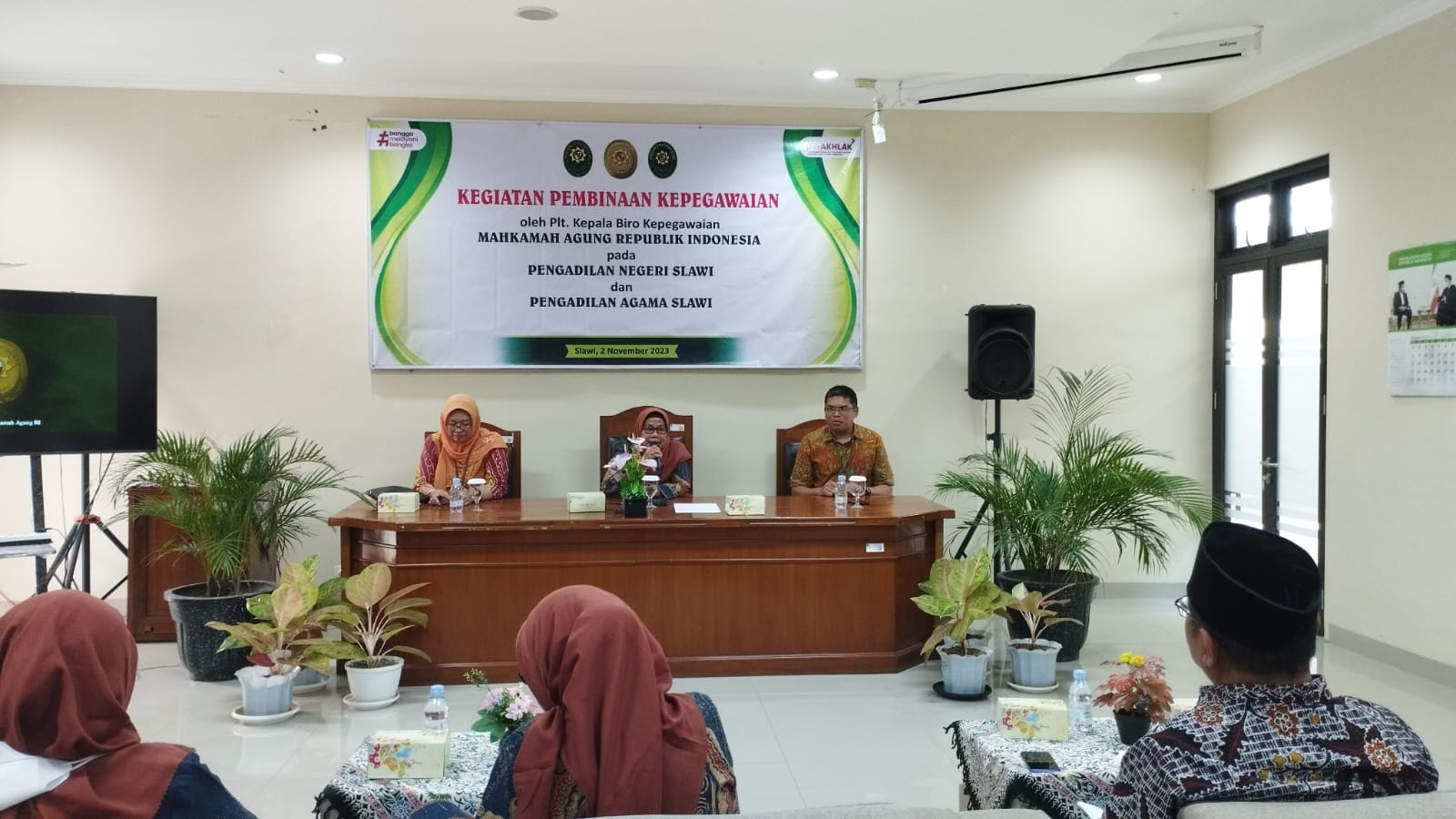 Slawi (2/11) — Pengadilan Negeri Slawi melaksanakan kegiatan pembinaan kepegawaian yang dihadiri langsung oleh Plt. Biro Kepegawaian Mahkamah Agung RI,