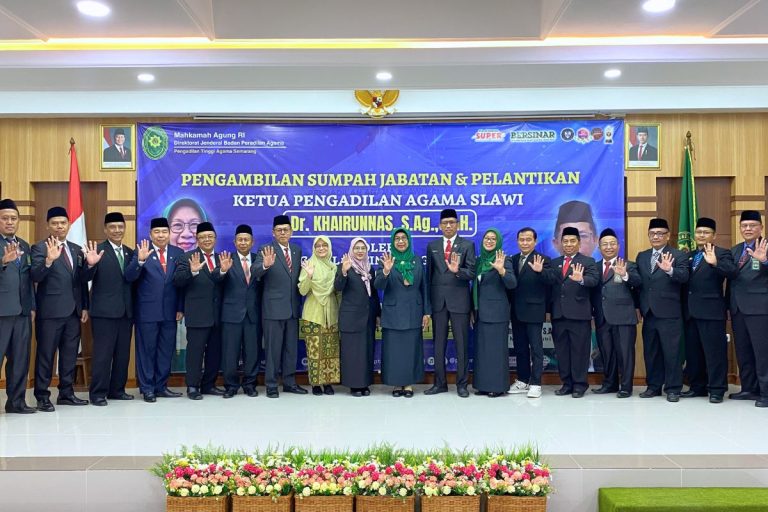 Slawi (4/7) – Ketua Pengadilan Negeri Slawi Dr. Muhammad Adil Kasim, S.H., M.H. hadiri pengambilan sumpah dan pelantikan Ketua Pengadilan