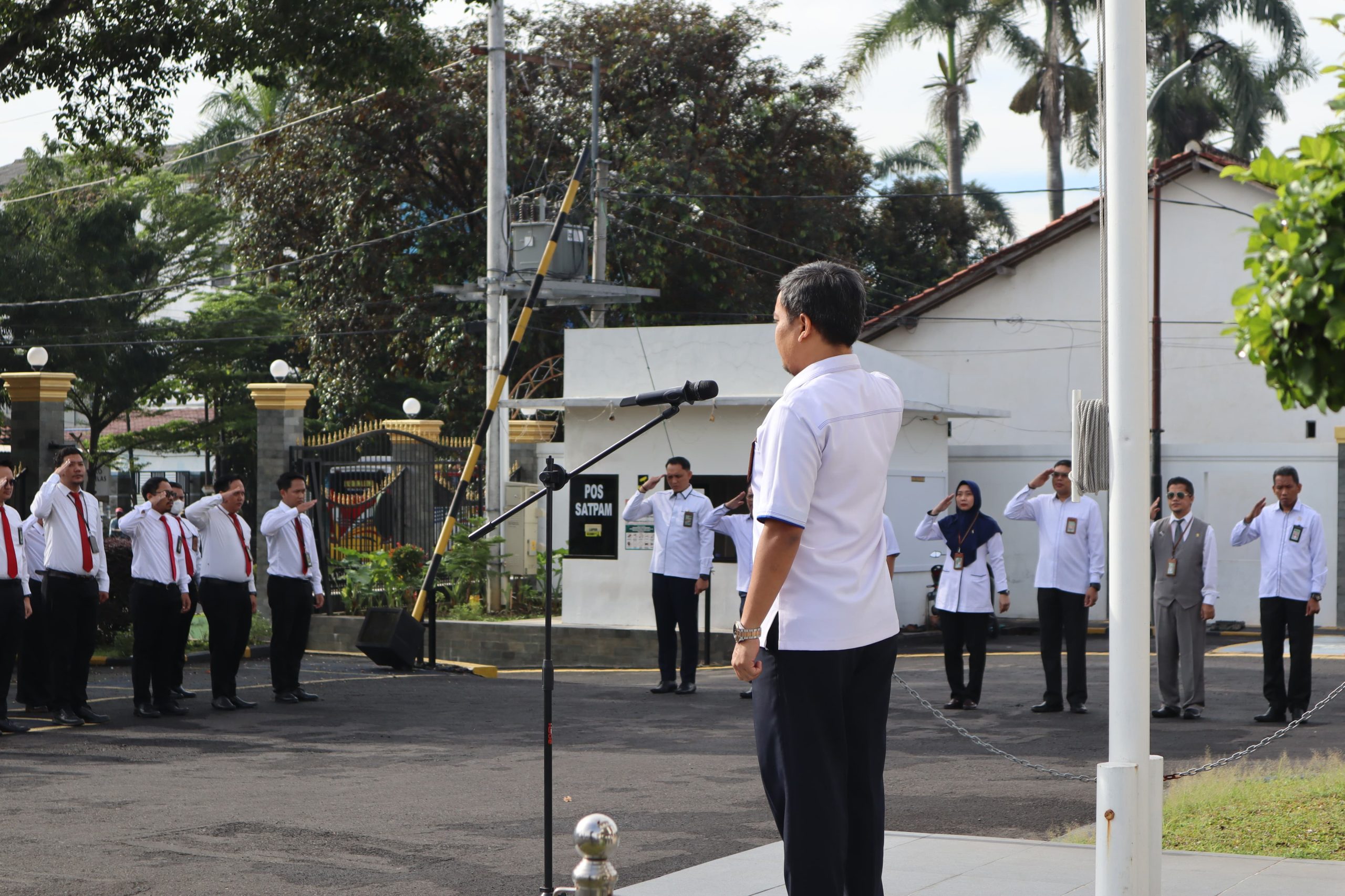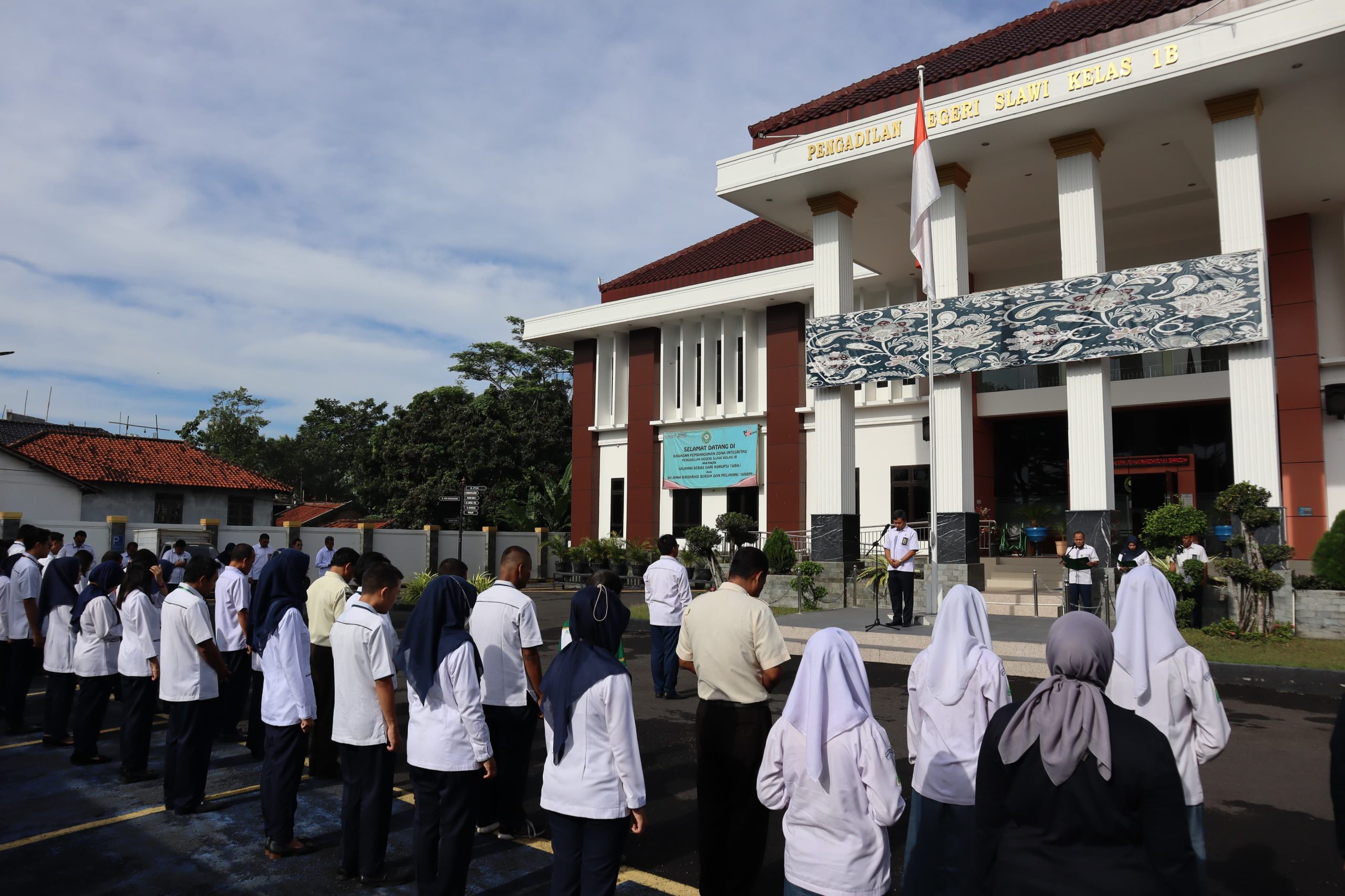 Apel pagi dihadiri oleh Pimpinan, Hakim, Calon Hakim, Pegawai Pengadilan Negeri Slawi serta Mahasiswa Magang dan Siswa PKL.