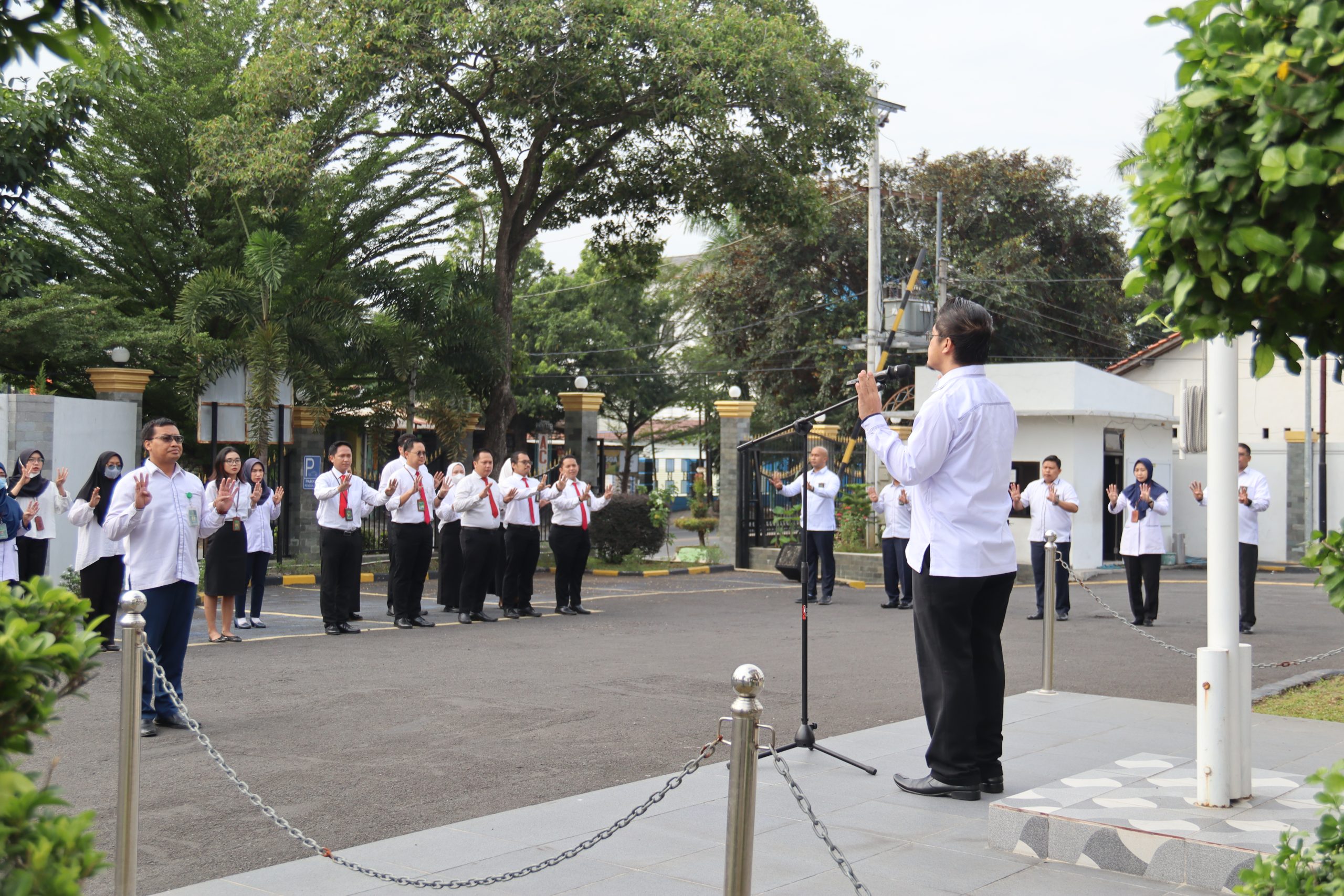 Apel pagi dihadiri oleh Pimpinan, Hakim, Calon Hakim, Aparatur serta PPNPN Pengadilan Negeri Slawi.