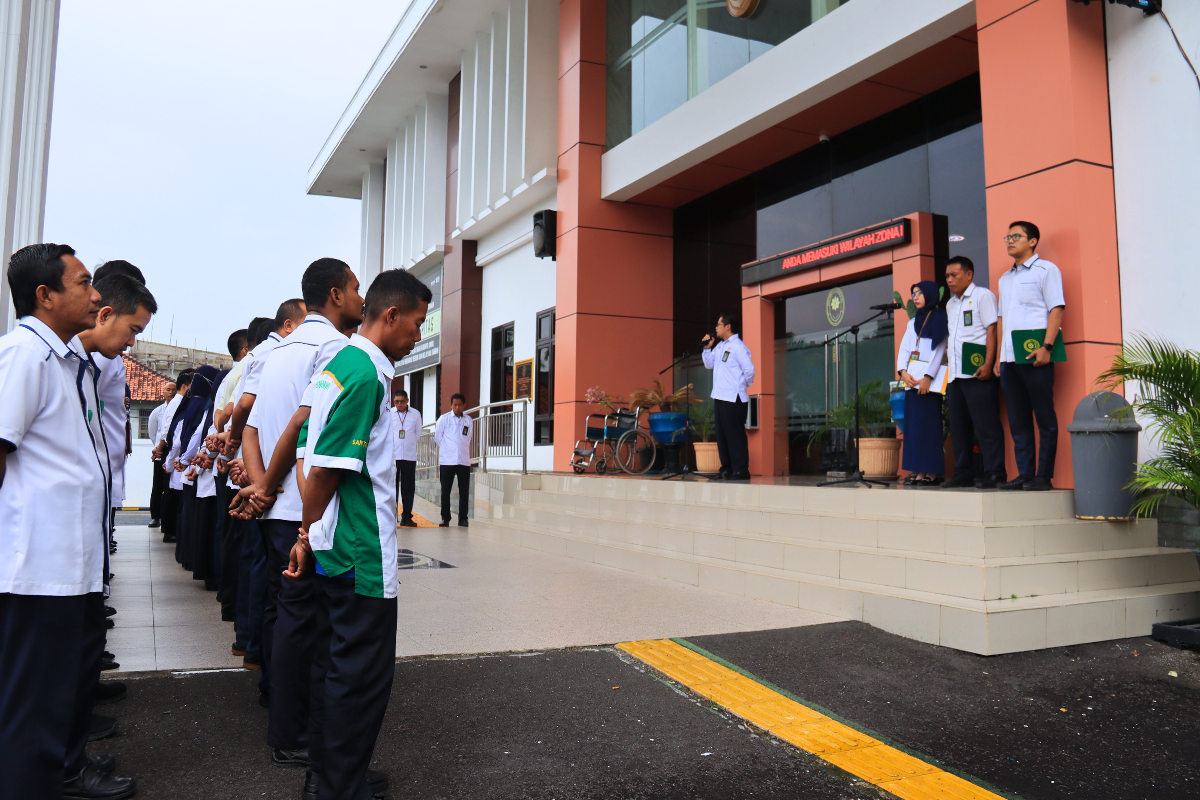 Pembina apel, Wakil Ketua Pengadilan Negeri Slawi, Bapak Oki Basuki Rachmat, S.H., M.M., M.H. mengajak seluruh peserta untuk tetap disiplin, kompak, dan semangat dalam bekerja di bulan Ramadhan. Puasa tidak menjadi hambatan untuk berkinerja, sehingga tugas harus dijalankan dengan baik dan penuh tanggung jawab.