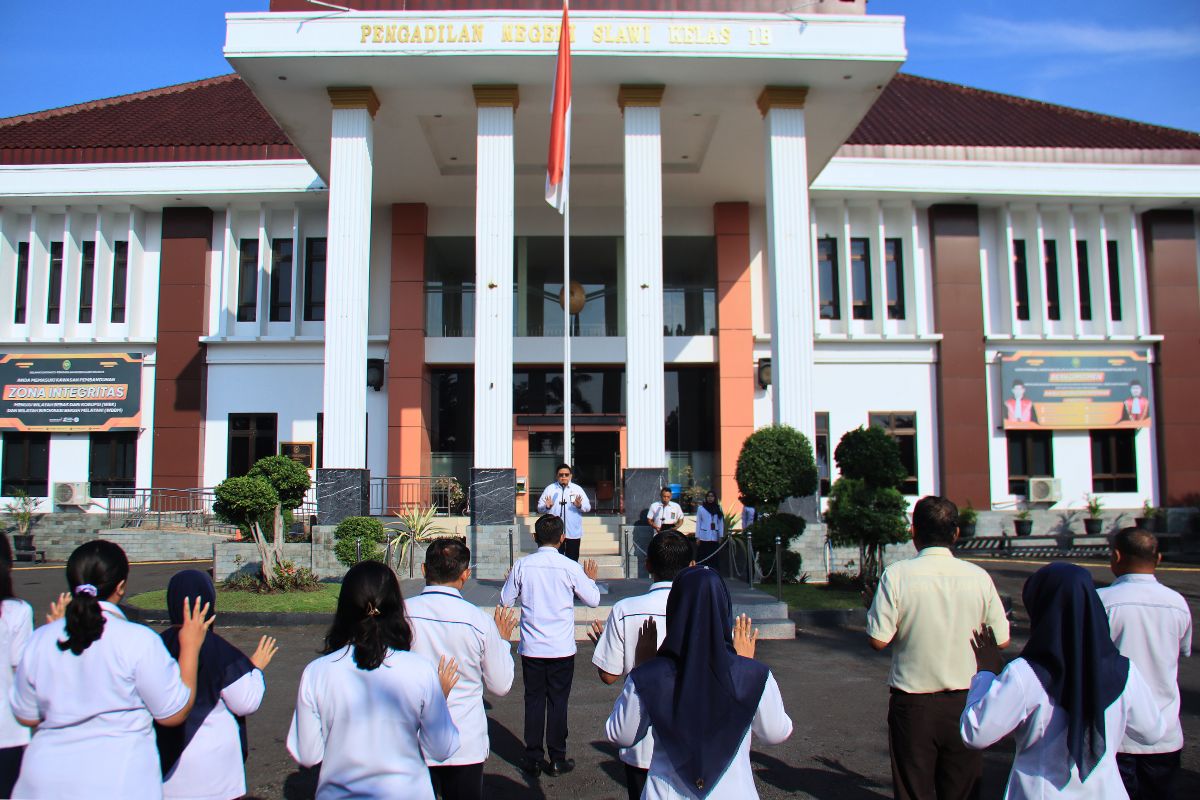 Slawi (7/7) – Pengadilan Negeri Slawi melaksanakan apel rutin Senin pagi yang dilaksanakan di halaman kantor Pengadilan Negeri Slawi, dihadiri oleh Pimpinan, Hakim serta segenap aparatur.