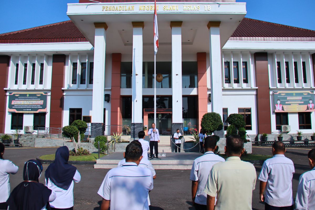 Slawi (21/7) – Pengadilan Negeri Slawi melaksanakan apel rutin Senin pagi yang dilaksanakan di halaman kantor Pengadilan Negeri Slawi, dihadiri oleh Pimpinan, Hakim serta segenap aparatur.
