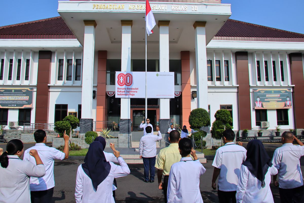 Slawi (11/8) – Pengadilan Negeri Slawi melaksanakan apel rutin Senin pagi di halaman kantor. Kegiatan tersebut diikuti oleh Pimpinan, Hakim, serta seluruh aparatur sebagai bagian dari pembinaan dan peningkatan disiplin kerja.