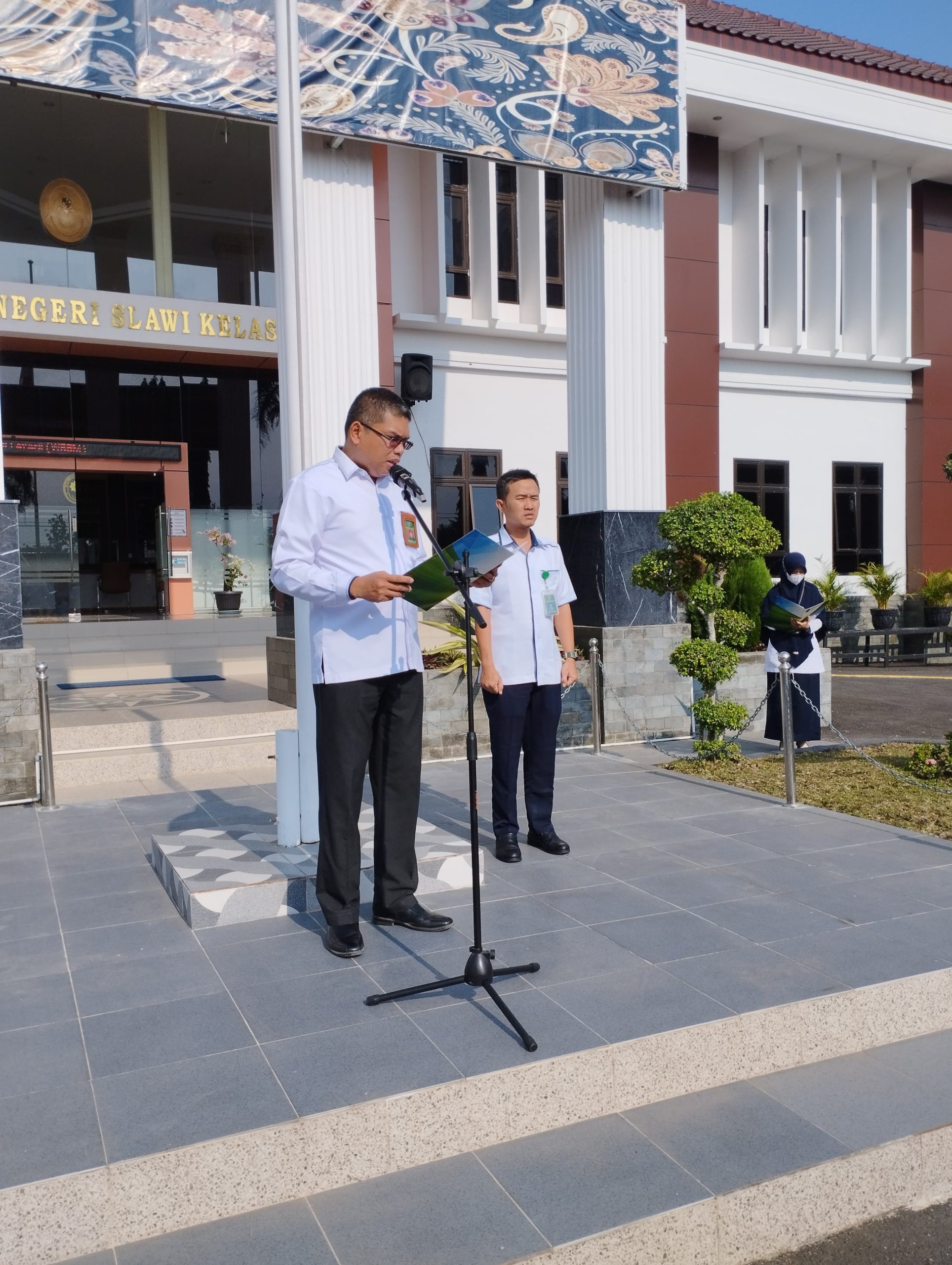 Pelaksanaan apel pagi Pengadilan Negeri Slawi, bertindak sebagai Pembina Apel adalah Hakim Pengadilan Negeri Slawi, Bapak Timur Agung N, S.H., M.Hum. dan pemimpin apel Bapak Kusworo, S.H. Apel pagi dihadiri oleh seluruh pejabat struktural, fungsional, serta seluruh pegawai Pengadilan Negeri Slawi.