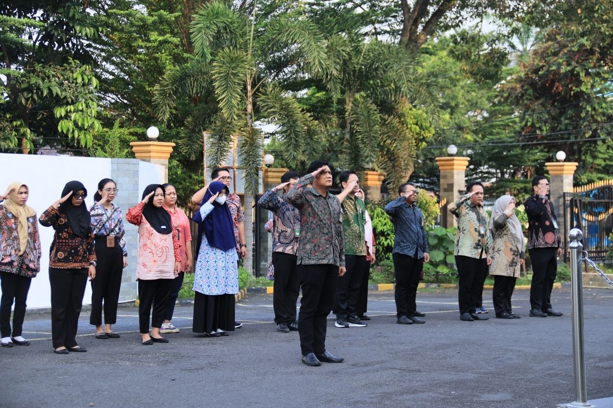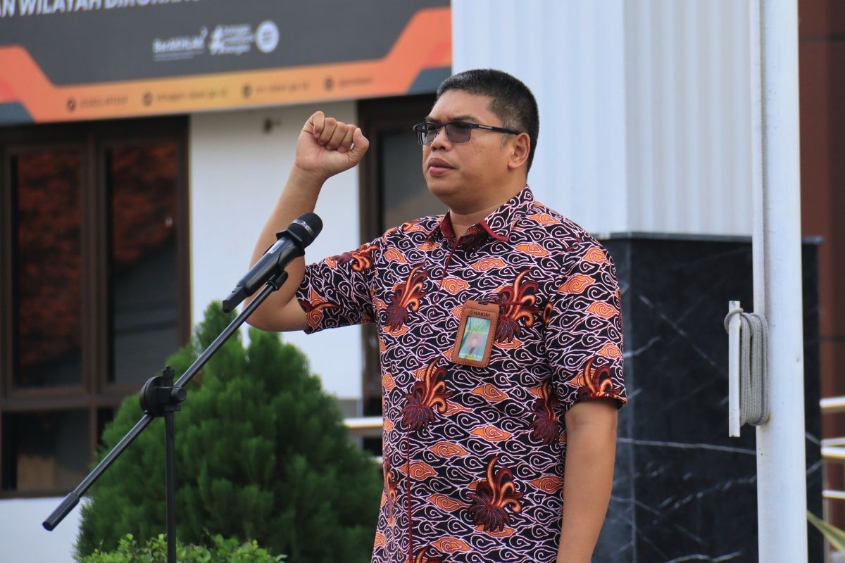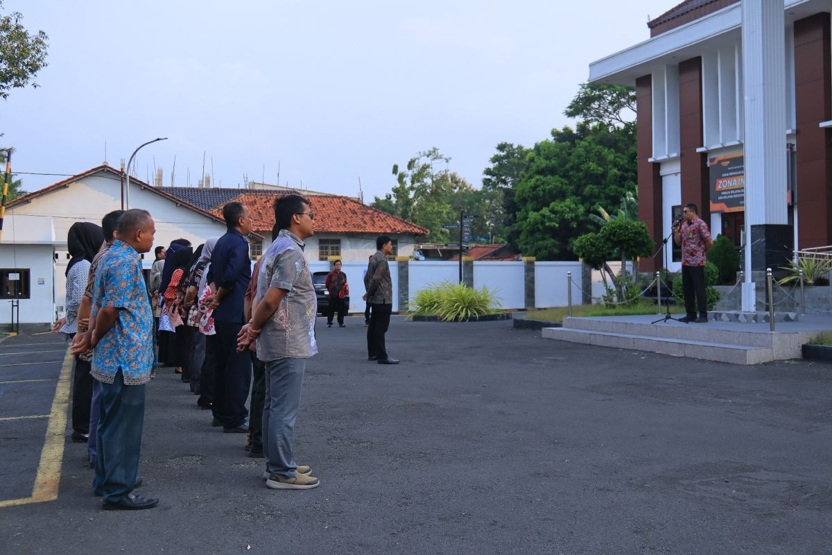 Pembina apel, Hakim PN Slawi, Bapak Timur Agung Nugroho, S.H., M.Hum., menyampaikan terima kasih atas kontribusi seluruh pegawai dalam mendukung proses pembangunan Zona Integritas. Ia juga mengingatkan pentingnya melengkapi hal-hal yang masih perlu disempurnakan demi kemajuan bersama.