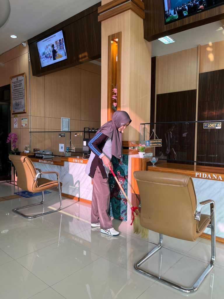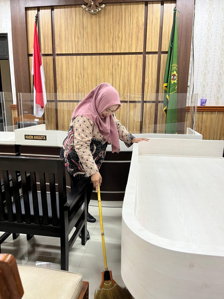Kegiatan diawali dengan briefing singkat yang dipimpin oleh Ketua Pengadilan Negeri Slawi, kemudian dilanjutkan dengan kegiatan utama kerja bakti membersihkan di seluruh area gedung Pengadilan Negeri Slawi, dari area basement, area pelayanan, ruang sidang dan ruang kerja masing-masing.