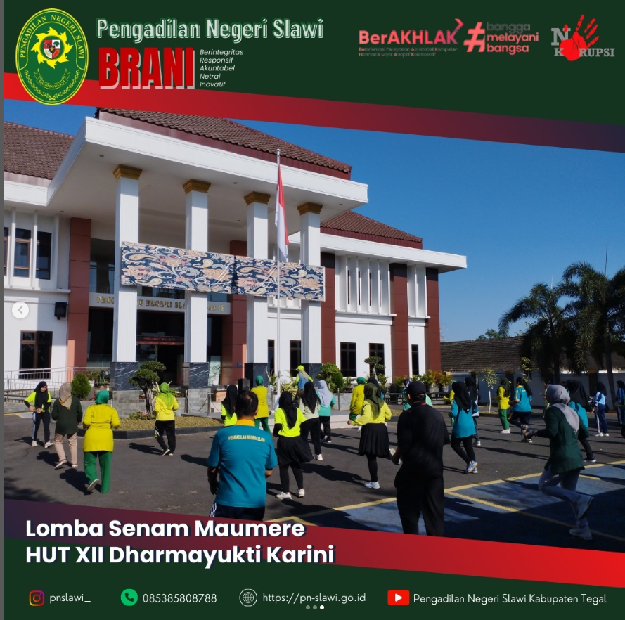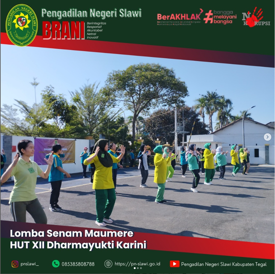 Dharmayukti Karini Cabang Slawi mangadakan lomba senam maumere sebagai salah satu agenda peringatan Hari Ulang Tahun XXI Dharmayukti Karini.