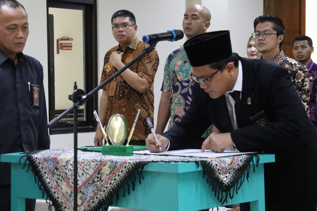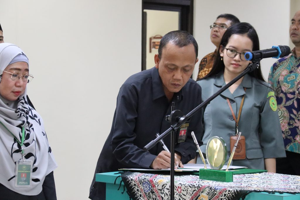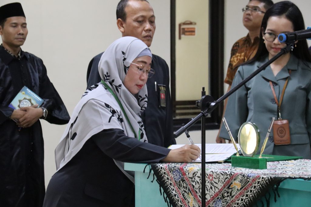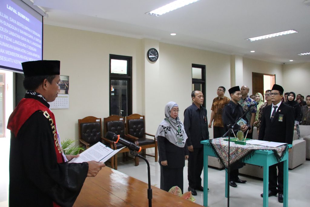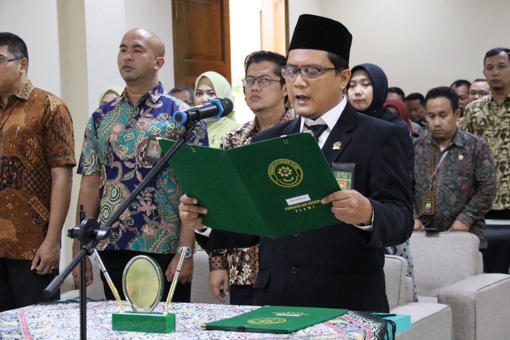 Acara diawali dengan menyanyikan lagu kebangsaan Indonesia Raya dilanjutkan Hymne Mahkamah Agung RI, pembacaan surat Keputusan Mahkamah Agung RI, pengambilan sumpah jabatan dan penandatangan berita acara sumpah, bertindak sebagai Saksi, Panitera Muda Pidana Pengadilan Negeri Slawi Bapak Sutrisno, S.H., M.H. dan Panitera Muda Hukum Pengadilan Negeri Slawi Ibu Eswin Ririh Santosiarti, S.H. dilanjutkan dengan pembacaan dan penandatanganan Pakta Integritas.