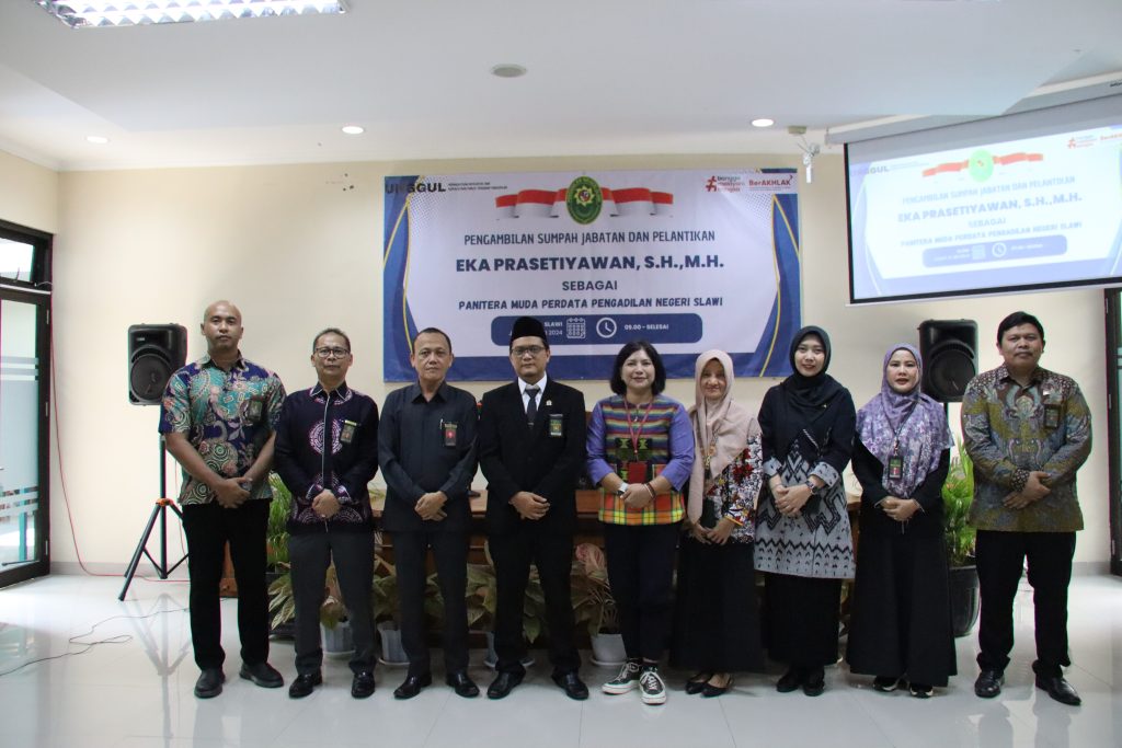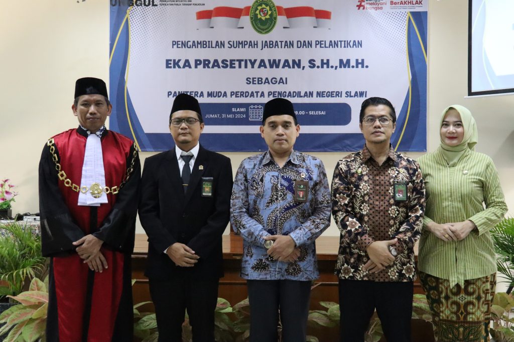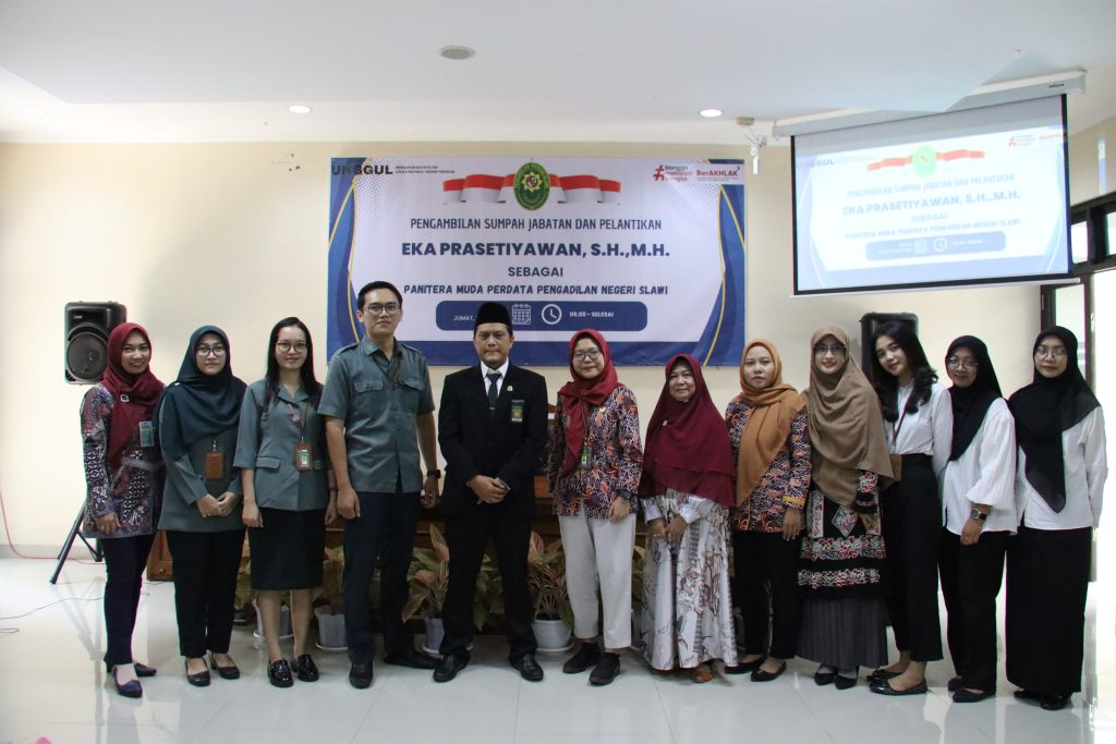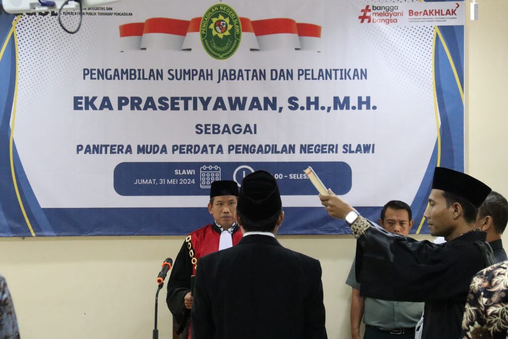 Slawi (31/5) – Bertempat di Aula Pengadilan Negeri Slawi, telah dilaksanakan Pengambilan Sumpah Jabatan dan Pelantikan Bapak Eka Prasetiyawan, S.H., M.H. sebagai Panitera Muda Perdata Pengadilan Negeri Slawi oleh Ketua Pengadilan Negeri Slawi Bapak Dr. Muhammad Adil Kasim, S.H., M.H..