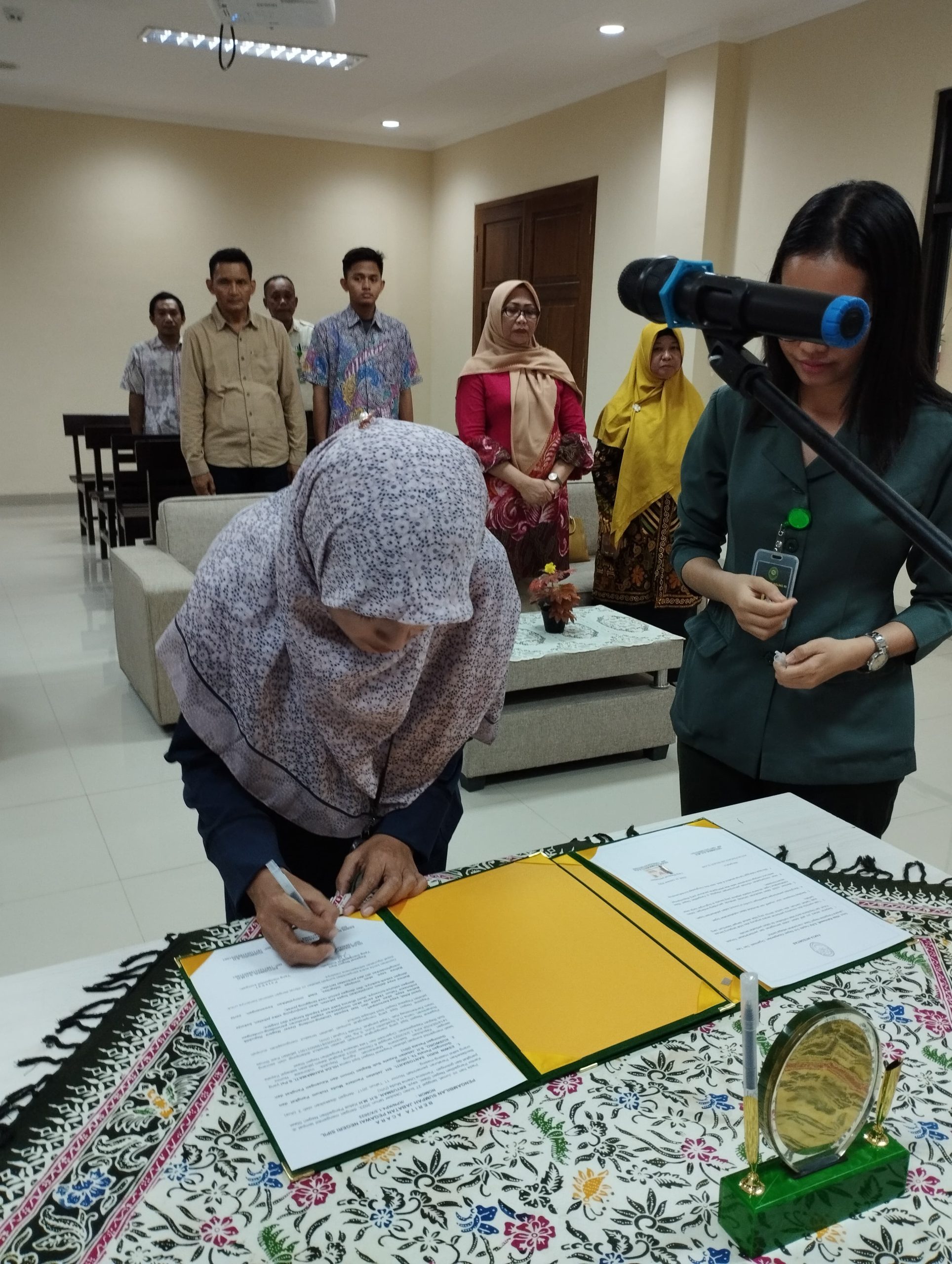 Setelah pengambilan sumpah jabatan, acara dilanjutkan dengan penandatanganan berita acara pengambilan sumpah jabatan oleh HILDA RAHMAWATI, S.Psi sebagai pejabat yang diambil sumpah.