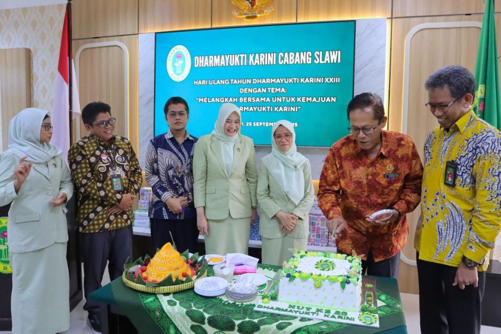 Kamis, 25 September 2025 – Dharmayukti Karini Cabang Slawi menggelar peringatan HUT Dharmayukti Karini ke-XXIII dengan tema “Melangkah Bersama untuk Kemajuan Dharmayukti Karini” di Aula Pengadilan Negeri Slawi.
