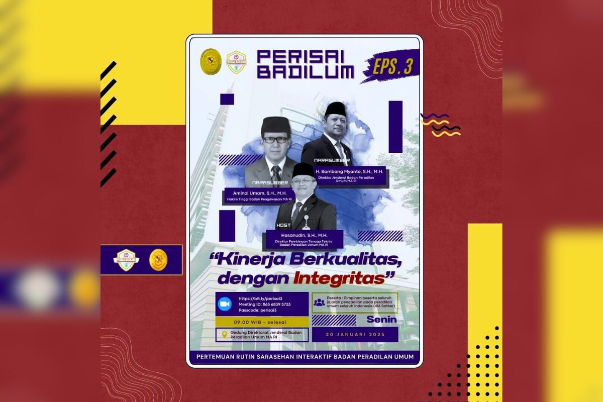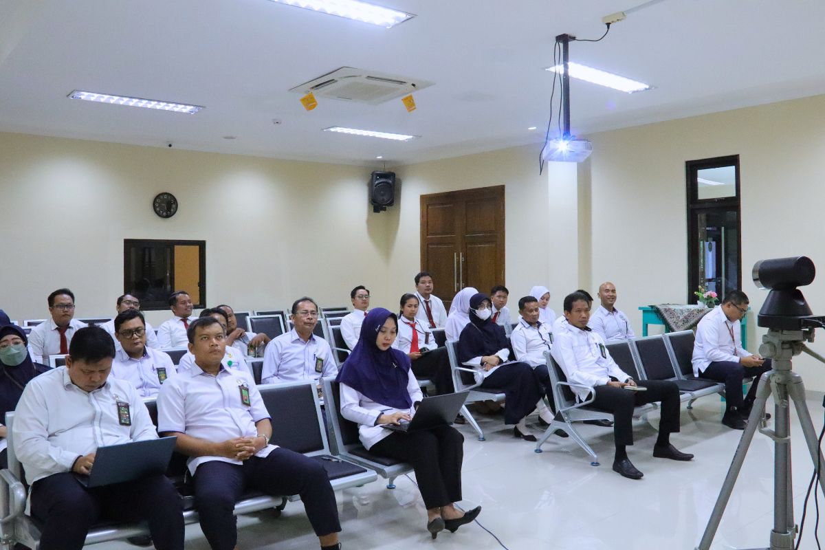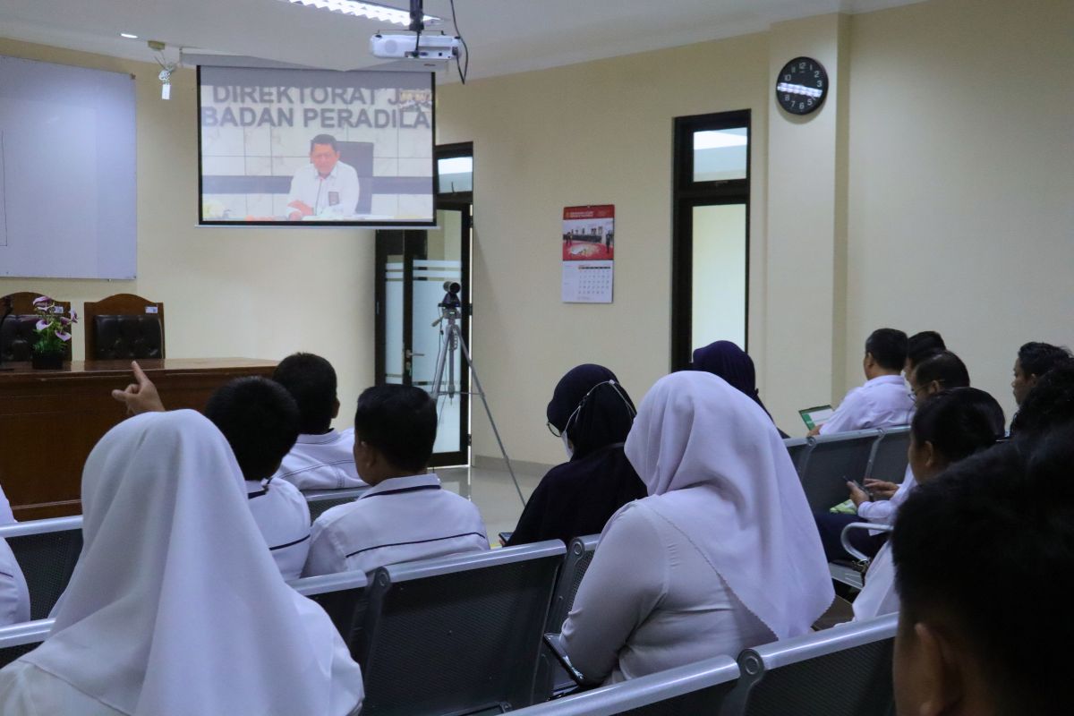 Slawi (20/1) – Pimpinan, Hakim, dan seluruh Aparatur Pengadilan Negeri Slawi mengikuti kegiatan Pertemuan Rutin dan Sarasehan Interaktif Badan Peradilan Umum (Perisai Badilum) Episode 3 Tahun 2025 secara daring. Acara tersebut dilaksanakan di ruang aula Pengadilan Negeri Slawi.