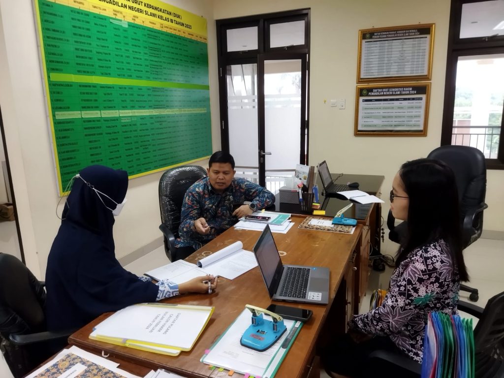 Slawi (20/3) – Pengadilan Negeri Slawi melaksanakan rapat internal pada masing-masing unit yang didampingi oleh Hakim Pengawas Bidangnya.