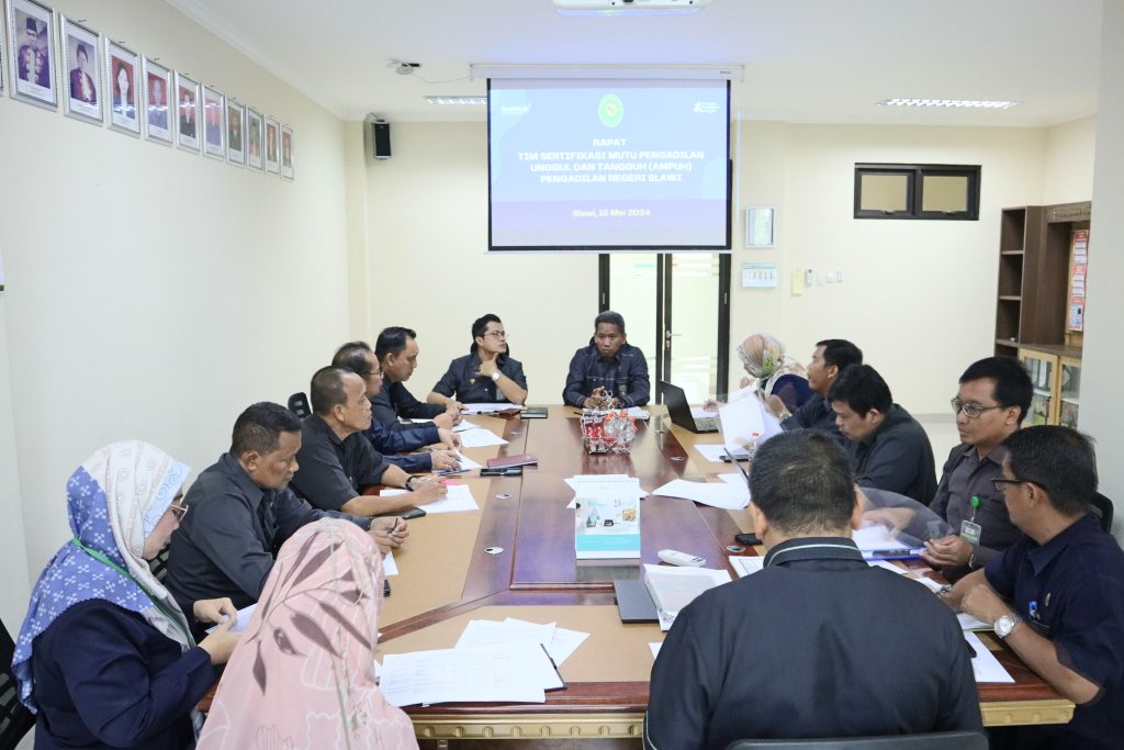 Slawi (15/5) – Bertempat di Ruang Rapat Pimpinan, telah diselenggarakan Rapat Pembentukan Tim Internal Assessment Dengan Indikator Penilaian Keterpenuhan Checklist Ampuh yang diikuti oleh Pimpinan, Hakim serta Pejabat Struktural.