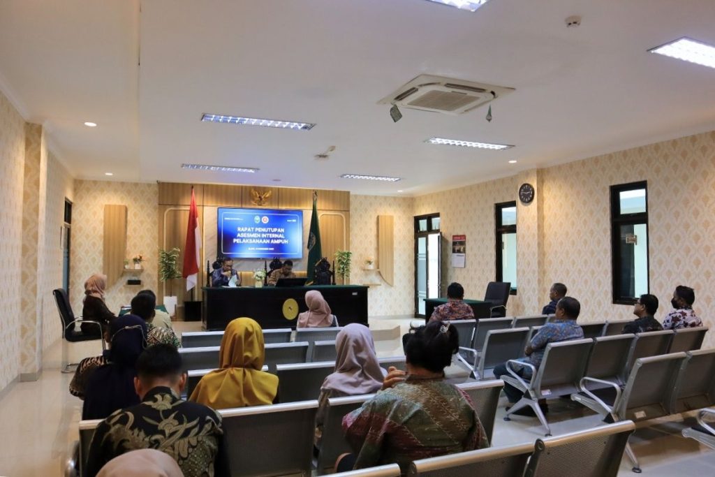Slawi (19/12) – Pengadilan Negeri Slawi melaksanakan Rapat Penutupan Asesmen Internal Pelaksanaan AMPUH (Akreditasi Mutu Peradilan Unggul dan Handal) yang bertempat di Ruang Aula Pengadilan Negeri Slawi. Kegiatan ini merupakan rangkaian akhir dari proses asesmen internal sebagai bentuk evaluasi menyeluruh terhadap penerapan standar AMPUH di lingkungan Pengadilan Negeri Slawi. Melalui rapat ini, disampaikan hasil pelaksanaan asesmen serta penegasan komitmen bersama seluruh unsur pimpinan, pejabat, dan pegawai untuk terus melakukan perbaikan berkelanjutan dalam rangka peningkatan mutu kinerja dan kualitas pelayanan peradilan kepada masyarakat.