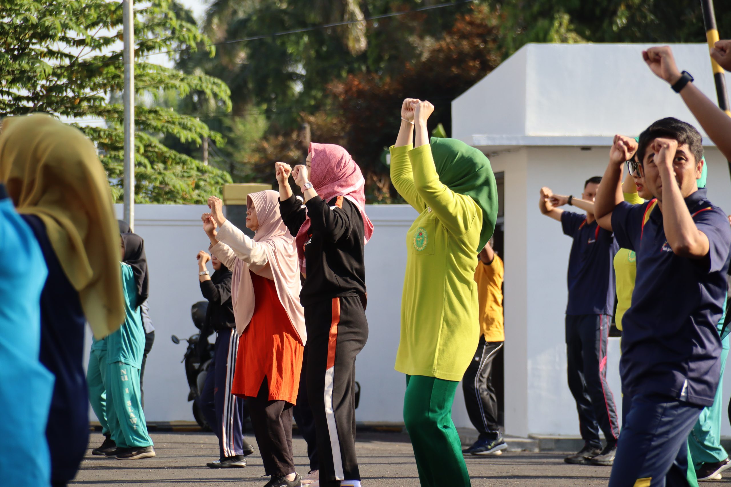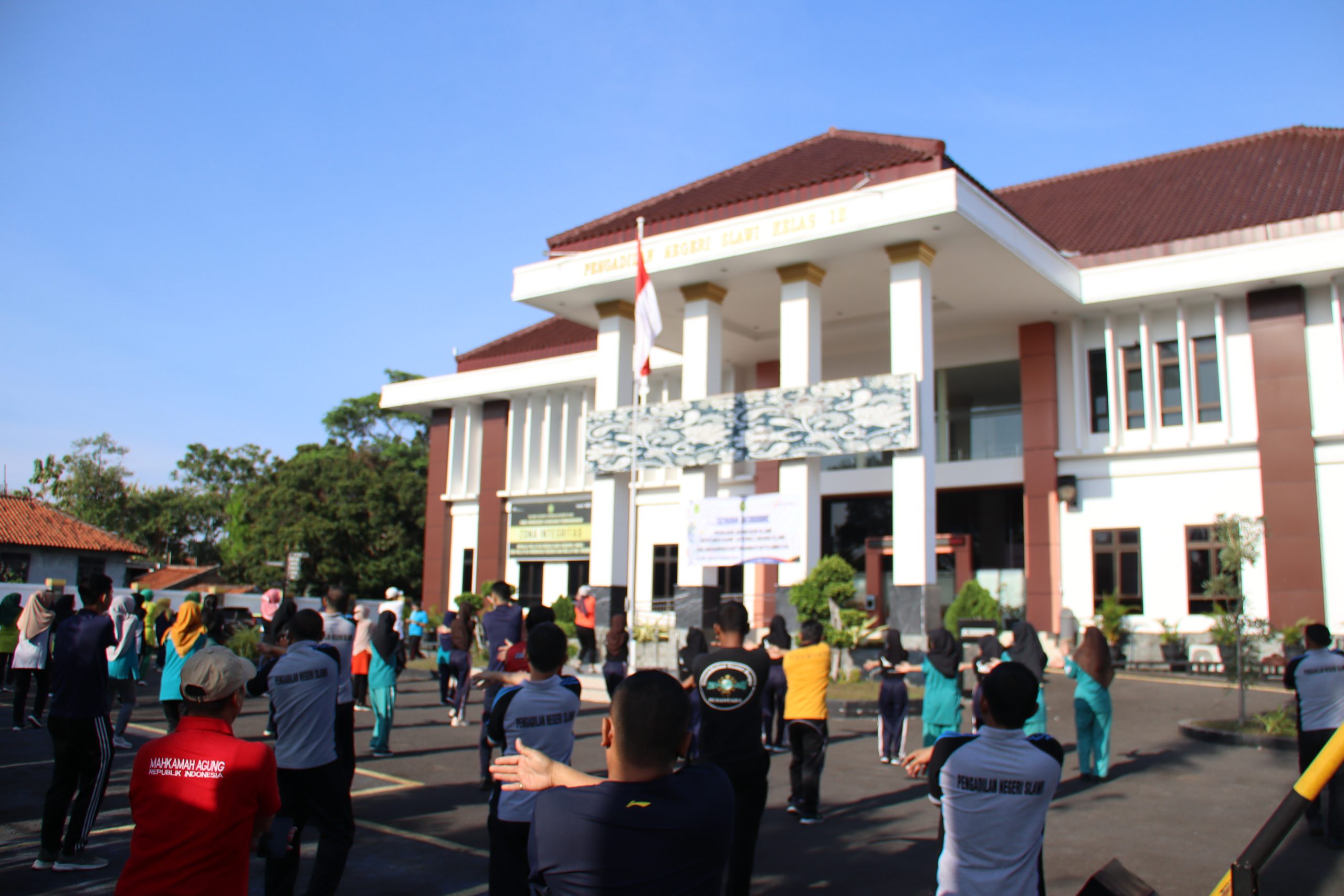 Kegiatan ini berlangsung di halaman kantor PN Slawi dan diikuti oleh pegawai dari kedua institusi dan anggota Dharmayukti Karini Cabang Slawi dengan penuh semangat.