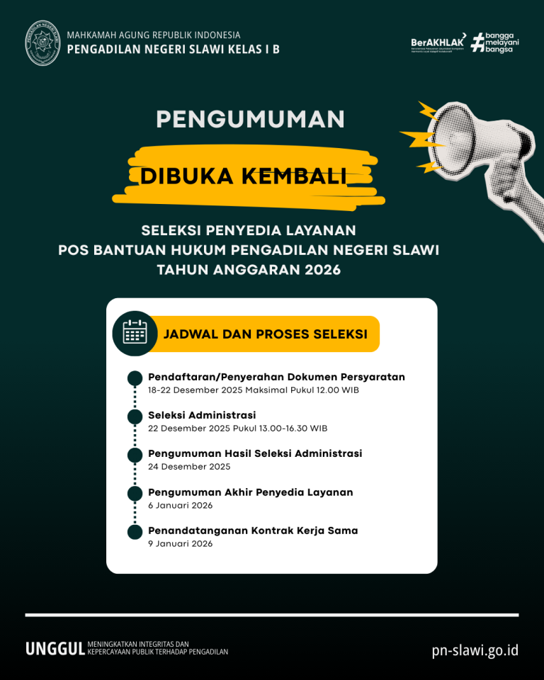 PERPANJANGAN WAKTU PENDAFTARAN DAN PERUBAHAN JADWAL PELAKSANAAN SELEKSI TERBUKA PENGISIAN JABATAN PIMPINAN TINGGI MADYA DAN PRATAMA PADA MAHKAMAH AGUNG RI TAHUN ANGGARAN 2025