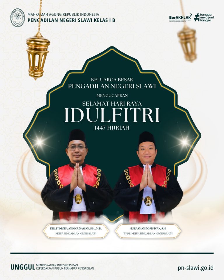 Keluarga Besar Pengadilan Negeri Slawi mengucapkan Selamat Memperingati Isra Mi’raj 1447 H Semoga Hikmah Perjalanan Suci Rasulullah SAW Senantiasa Meningkatkan