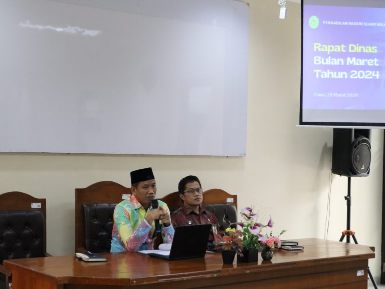 Slawi (28/3) – Pelaksanaan Rapat Dinas Bulan Maret Tahun 2024 dipimpin oleh Ketua Pengadilan Negeri Slawi Bapak Dr. Muhammad Adil